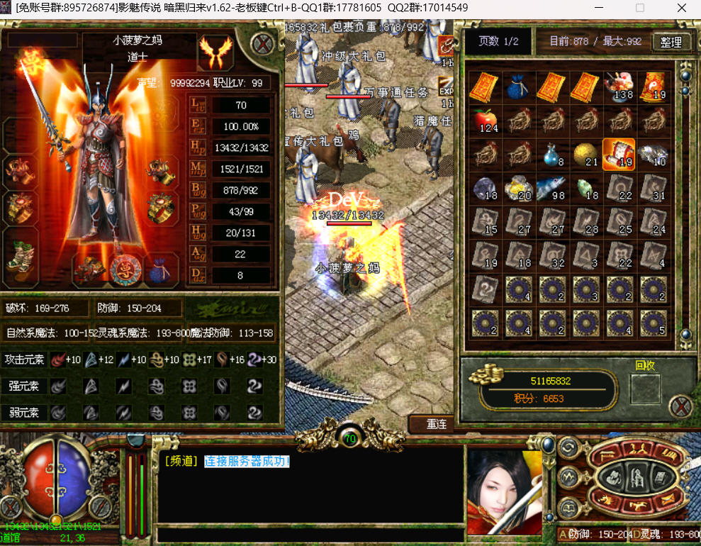 打到这里说明你具备了完成刚进来叫你在万事通那里接的那个任务了,所有指定boss杀5次就就领取你丰厚的奖励吧,有了那些奖励你就正式脱离菜鸟级别走向大神的通道了。简单介绍下后面该怎么继续混。首先泡点转身吧,有时间玩就刷声望。级别升级上去别忘了去道馆城主那加破坏。70到了就可以冲穴转生了,冲穴之前先做几个任务吧,做些奖励经验的任务,应为转生后降到1级,这是会很郁闷,各种超负重动不了等。所以提前做几个任务,冲完穴后在领取经验,这样以下可以升好多级的。然后继续泡点,有一定等级之后就可以响绝情出发了。绝情怪全属性的,所以你身上不可以带属性攻击的装备,带了就是找死。