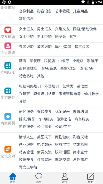 下载安装胶州信息港 app 后,打开即可进入首页。首页有各种板块,用户可以根据自己的需求点击相应板块。如想了解本地新闻,可点击资讯板块;有求职需求,可进入招聘求职板块浏览岗位信息或发布求职信息;若要租房买房,则可在房产租售板块查找房源等。
