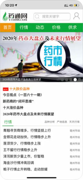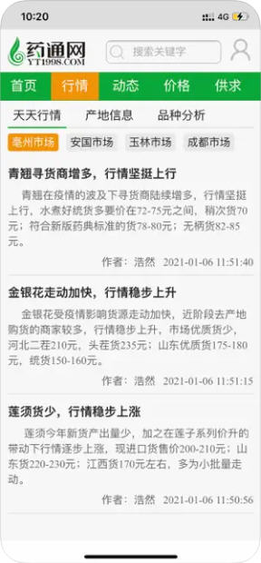 药通网中药材交易平台app是一款中药材信息服务平台,由亳州市药通信息咨询有限公司经营。其界面简洁明了,操作简单,为用户提供全面的中药材信息和便捷的购药服务。