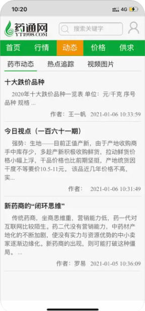 交流:有品种专题、热心拍客、药商谈药等板块。
