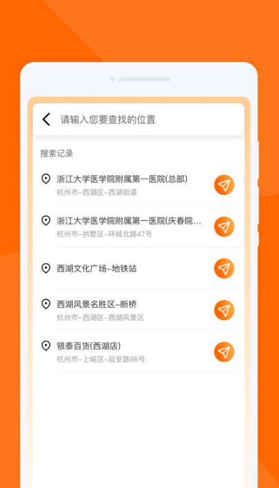 地点搜索:支持用户输入具体地点名称进行搜索,精准定位目的地位置,并显示详细区域。