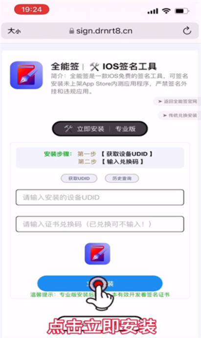 选择签名方式:如果是常规应用签名安装,直接选择签名安装;若为 iOS14-16.6.1 设备,可通过超然安装实现永久不掉签名。