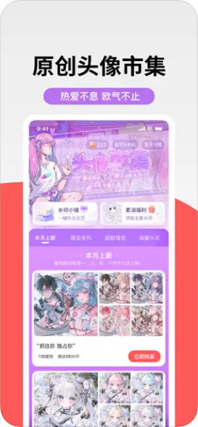 原创内容丰富:有原创头像市集,每周更新,还有创意作图工具,提供各类流行贴纸、素材模板。