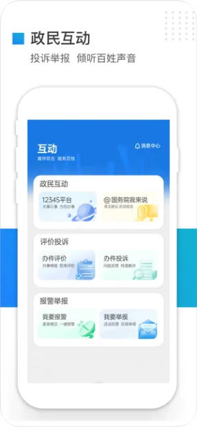 政民互动:内置 12345 热线通道,用户可在线提交诉求、查询办理进度,并参与政策意见征集。