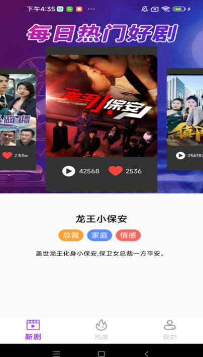 题材种类多样:涵盖总裁、家庭、情感等多种题材,每日上架新剧且题材不重复。