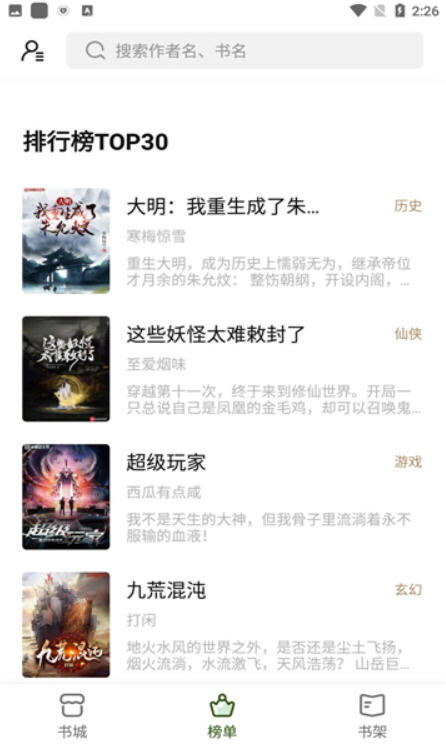 搜索小说:在软件首页点击上方的搜索框,输入小说名称、作者等关键词,可快速检索小说。