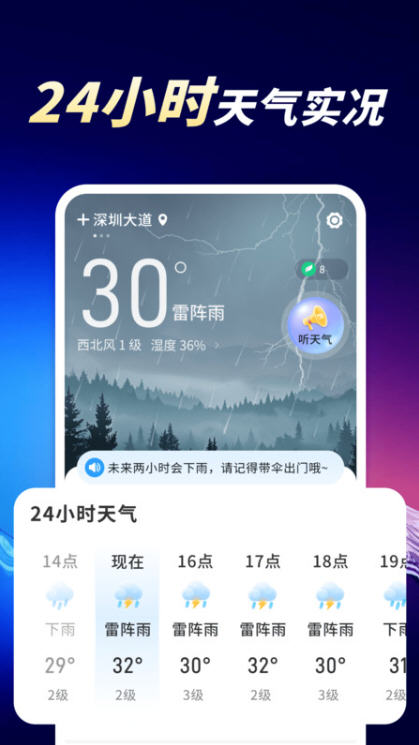 打开软件:下载安装后,点击打开天气预报分秒报 app。