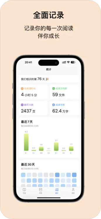 阅读数据统计:能生成阅读图谱,帮助用户了解自己的阅读习惯,如阅读时长、进度等数据清晰呈现。