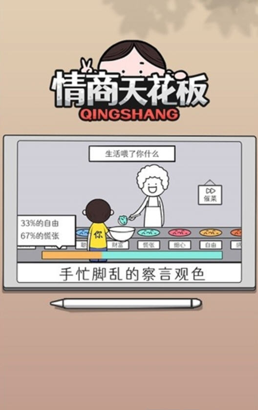 情商天花板无广告破解版是一款融合模拟经营与社交互动元素的休闲益智类手机游戏。游戏画面采用手绘卡通风格,设定丰富,玩家将扮演一个角色,通过沟通、理解和管理人际关系,不断提升自身的情商水平,解锁更多精彩剧情和游戏内容。