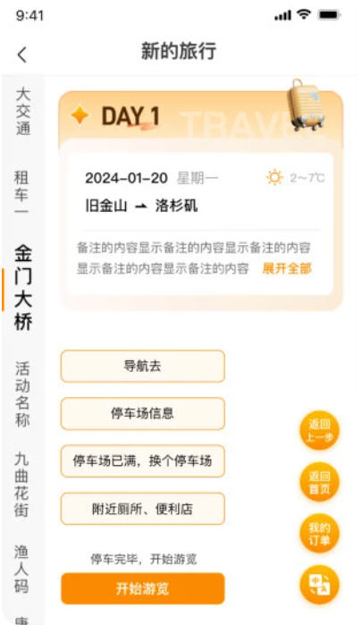 采用推荐行程:若采用系统推荐行程,会同步获得交通接驳方案和景点预约提醒,还支持实时导航跳转。