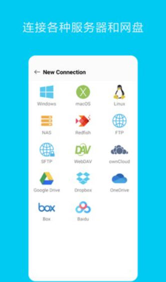 网络与云连接:添加 FTP/SMB 服务器或 NAS,输入地址 / 账号 / 密码连接;登录 OneDrive/Dropbox/Google Drive 等云盘,直接管理云端文件无需下载。