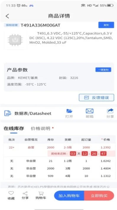 支持 Android/iOS 系统,安装包约 30MB,V1.2.9 版本无广告,基础查询免费,部分高级替代方案与供应链服务需付费,适配手机与平板,支持离线缓存常用芯片资料。