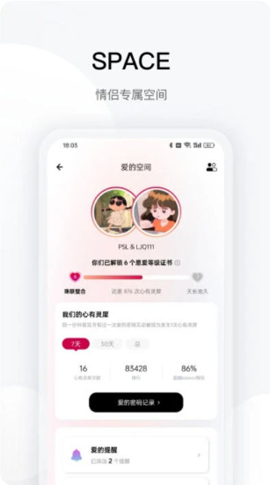 情感数据记录:记录互动次数、情感轨迹,生成专属情感报告,助力情侣情感管理。