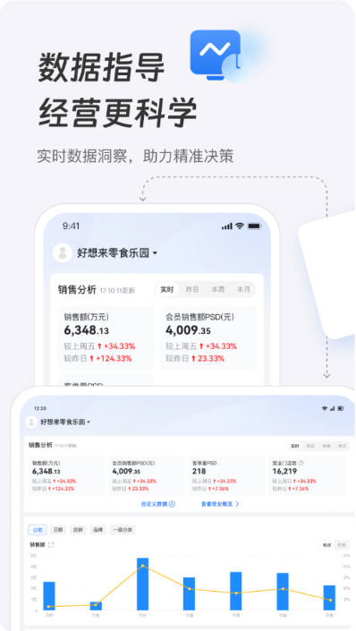 数据驱动决策:多维度数据分析功能,覆盖销售、库存、财务等,支持自定义报表,辅助商家精细化运营。