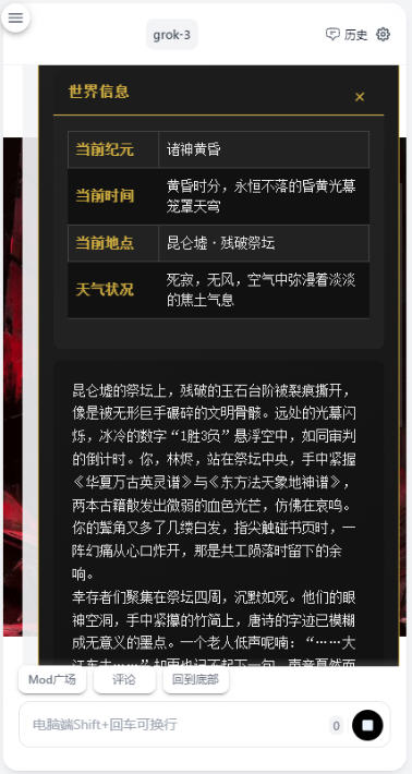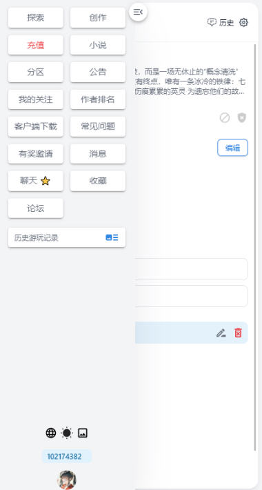 社区社交板块:角色 / 作品展示、作者关注、评论互动、历史游玩记录查询。