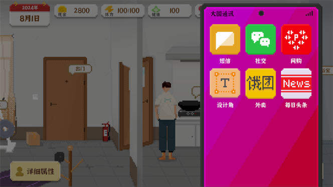 独自生活3折相思内购版是一款像素风格的模拟经营手游,玩家扮演独自求学的大学生,从狭小地下室起步,通过打工、学习、社交、装修房屋等活动规划人生,涵盖多种职业路径与社交情感线,有 50 多种结局,无强制任务,主打高自由度的独居生活模拟体验。