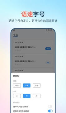可调整朗读语速、选择语音类型,对重点内容进行单句循环播放,还能保存识别的文本或分享给他人。