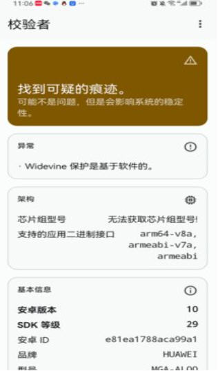 安全提示模块:针对检测出的 Root 权限、Xposed 框架等风险项,提供详细安全风险提示与相关处理建议,助力用户规避风险。