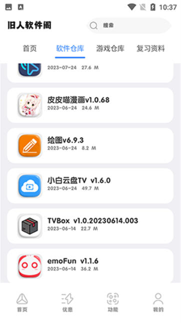 资源管理:在 “我的” 页面查看下载记录、管理安装包,对已下载资源分类整理,支持批量删除。
