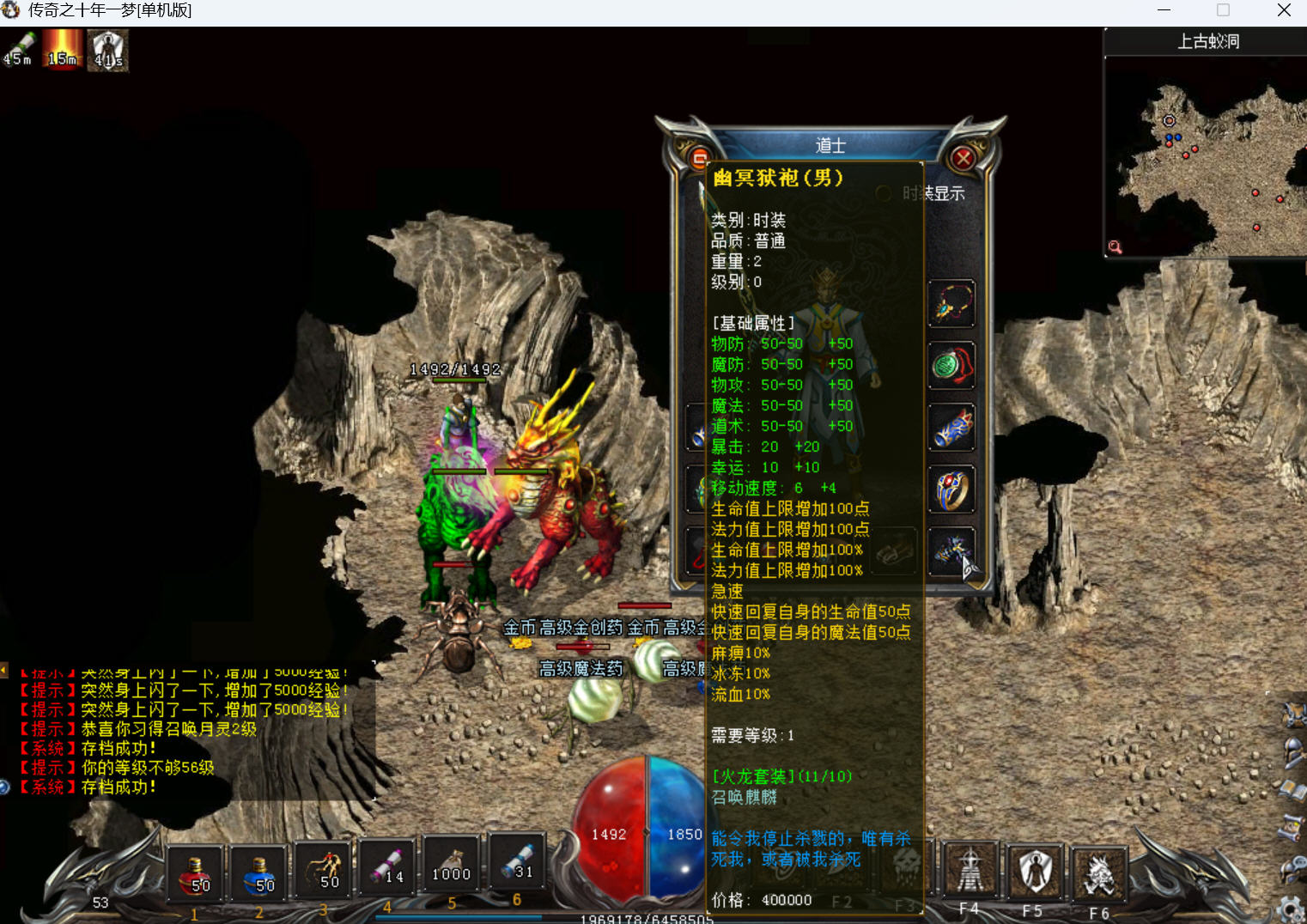 由于麻痹戒指爆率过低,本阶段要求战神套保底,尽量追求双麻。