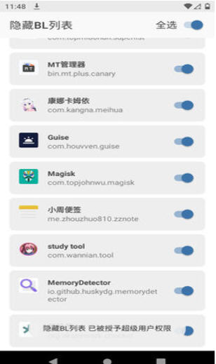 隐藏BL应用列表abk下载是 Android 平台专属的 Root/BL 解锁状态伪装与隐私防护工具,核心定位 “规避应用检测 + 包名隐藏 + Root 环境适配”,专为 Root 设备用户设计,可屏蔽应用对 Root、Bootloader 解锁、Xposed/Magisk 等模块的检测,通过修改系统属性与包名信息,解决日系厂商游戏、金融 / 安全类应用因 Root 限制无法运行的问题。软件需搭配 TrickyStore 模块或 Root 权限使用,兼容 LSPosed、Magisk 等框架,支持黑白名单管理与批量操作,适配隐私保护、游戏运行、应用兼容等场景,体积小巧、免费无广告,适合高级用户与 Root 设备玩家。