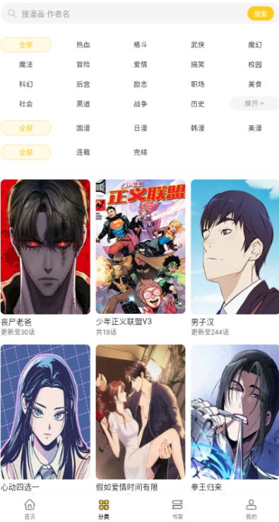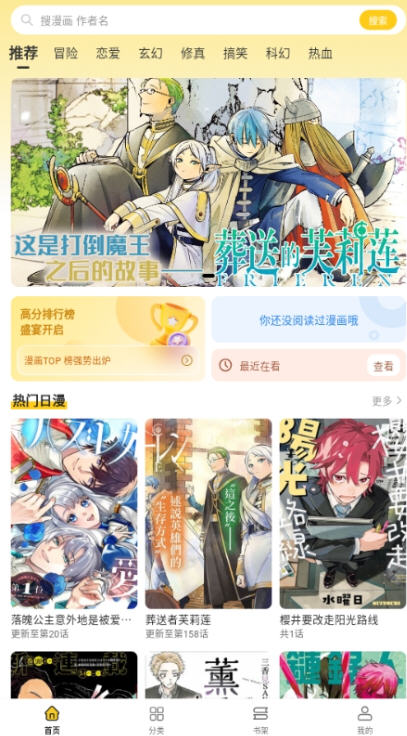 书架管理:将喜欢的漫画加入书架,自动记录阅读进度,支持分类与排序,一键追更。