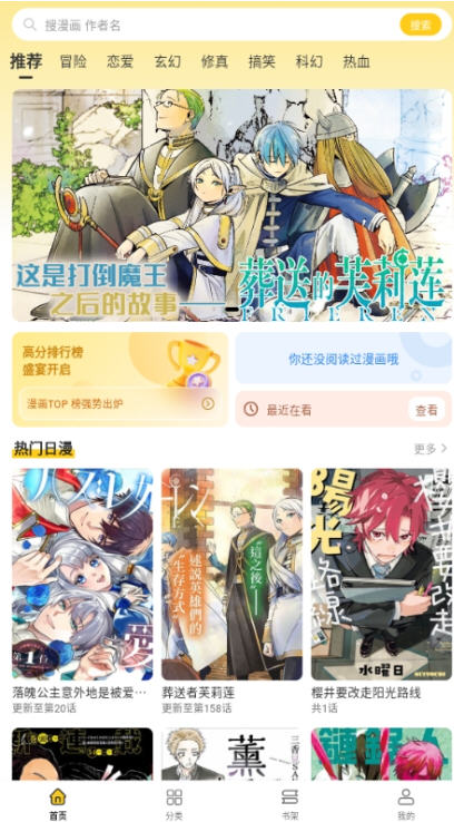 品类:日漫、国漫、韩漫、美漫全覆盖,含热血、恋爱、冒险、校园、悬疑、修真等题材。