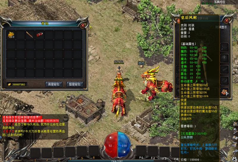 1.时装自带三职业火龙技能,战士是火龙剑法,法师是火龙分神,道士是召唤麒麟