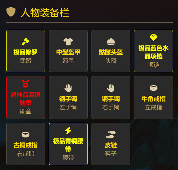 品质系统:装备有普通、极品、神品、超神品四个等级