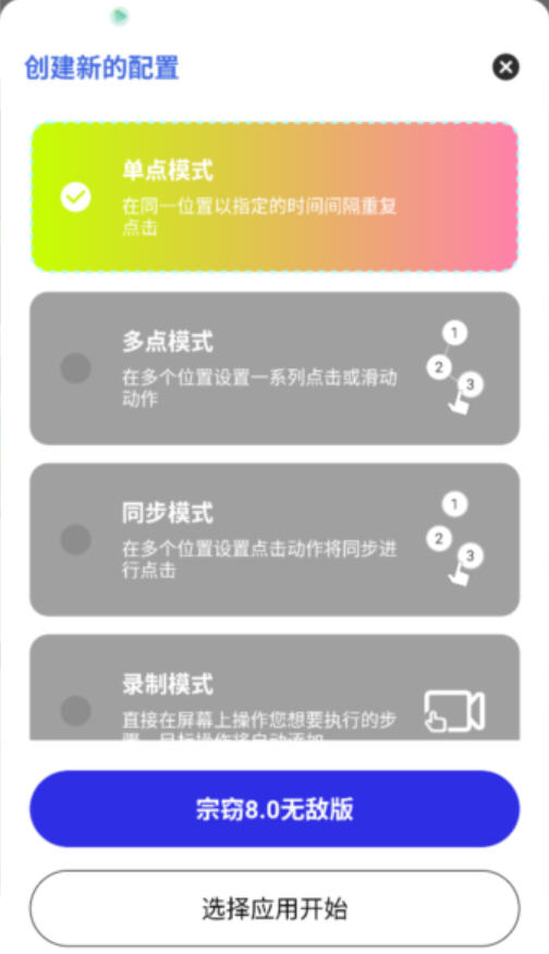 宗窃连点11.0无敌版是一款面向 Android 平台的全自动点击辅助工具,属于免 Root 触控模拟类应用,主要用于实现屏幕指定位置的重复点击、长按、滑动等自动化操作。适用于游戏挂机、任务重复点击、签到、点赞、抢单等场景,无需复杂设置即可快速生效,主打稳定、轻量、低占用。