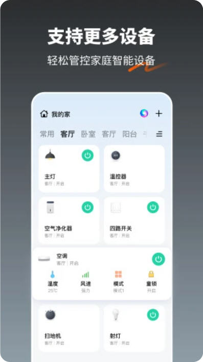 一键掌控全屋智能:打破设备品牌与品类壁垒,一款 App 即可完成所有智能设备的控制与管理,无需繁琐操作,新手也能快速上手,真正实现 “万物互联” 的智能体验。