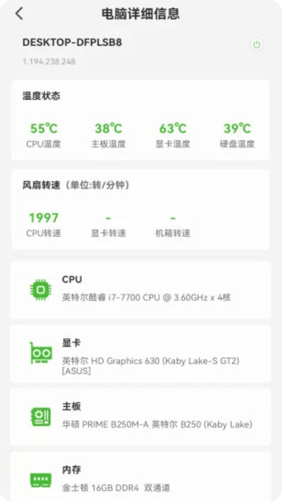 绑定电脑端,实现远程查看电脑硬件、温度、跑分,远程关机 / 重启硬件狗狗