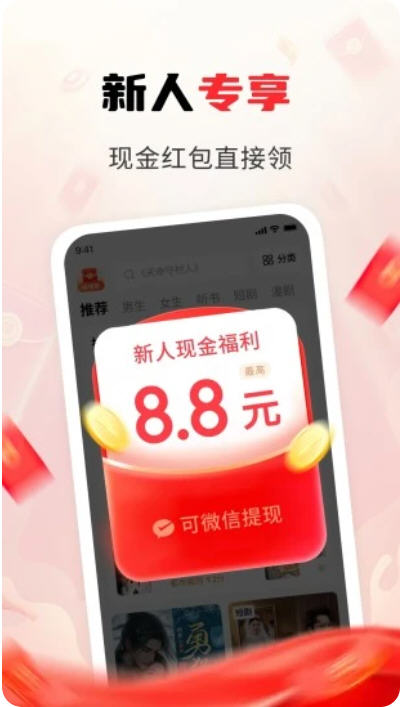 赚钱提现:每日签到、阅读赚金币,金币可兑换现金,低门槛提现。