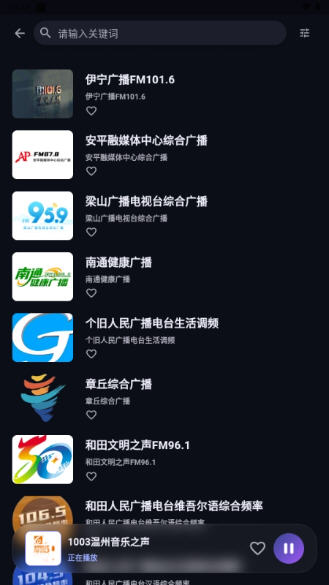 点击对应电台,一键播放,支持后台锁屏播放,不影响手机其他操作。