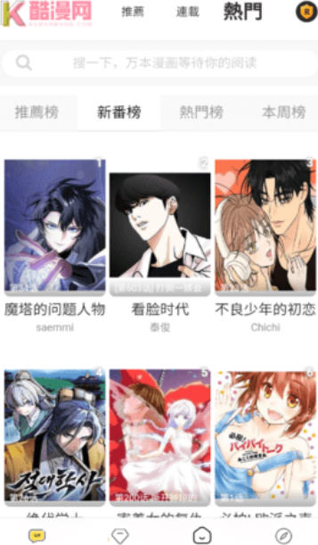 打开 app,首页浏览热门、新作、完结漫画,或用搜索框查找作品。