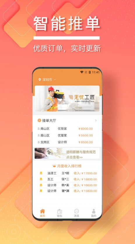 无忧工匠app,这是一款专门为了装修服务而打造的一款平台,你可以直接来到这里进行接单,或者也是可以来到这里进行下单。如果你有新房子需要装修,那么直接根据你的需求来进行下单就可以了,作为一个设计师也可以来到这里进行接单哦。能够让你随时随地的自由的进行接单,各种优质订单提供给能够在新的了解到所有的情况,非常的优质,有需要的朋友可以来到这里进行操作,没有任何的限制。