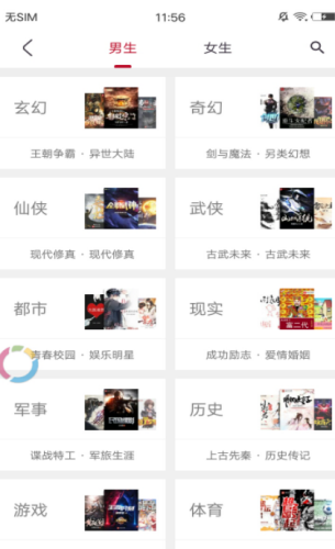 4、对于图书种类首页全部显示出来都市小说、网游小说、科幻小说满足男女读者的兴趣爱好;