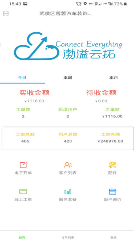 2、用户可以使用靓车营地app来对于平台的客户信息进行查看管理,以及对于日常各类订单的电子发票开单等等的功能,也可以在软件中完成。