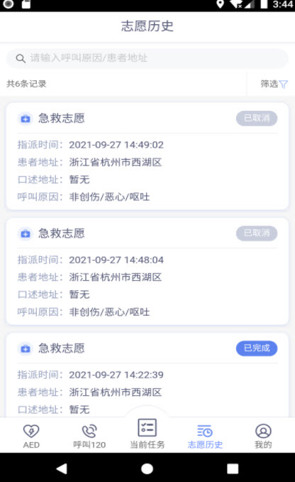 4、便当离呼叫者最近的5名救援人员快速找到呼叫者停止急救,并及时联络家眷等紧急联络人;