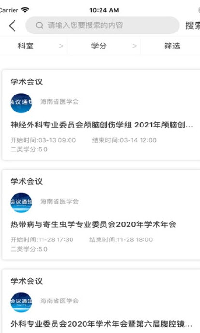 5、含有科室、学分、筛选等的服务,精准的众多内容等学习,科学的学习体验。