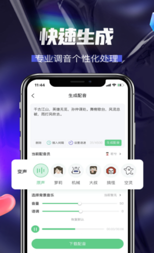 4、在手机上就可以给视频跟广告促销进行配音,具有多种语言和多种音色,让你的配音更有特色。