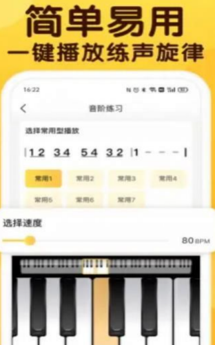 1、可选多种常用发声练习曲,一键播放练声旋律,带你快 速进入唱歌状态。