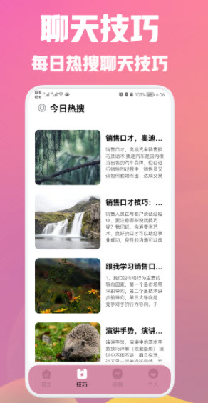 海量丰富的话术可快速提高说话技巧,让你谈吐自然不作,特色学堂,各类情况都有展示,可以自己随意翻阅学习