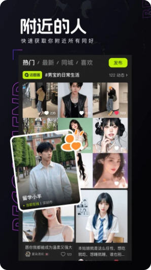 2.浏览发现:主页显示热门话题、推荐用户和精彩内容,用户可以自由浏览。
