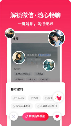 3.支持一键解锁微信聊天,让用户与配对伙伴顺畅沟通,增进相互了解。